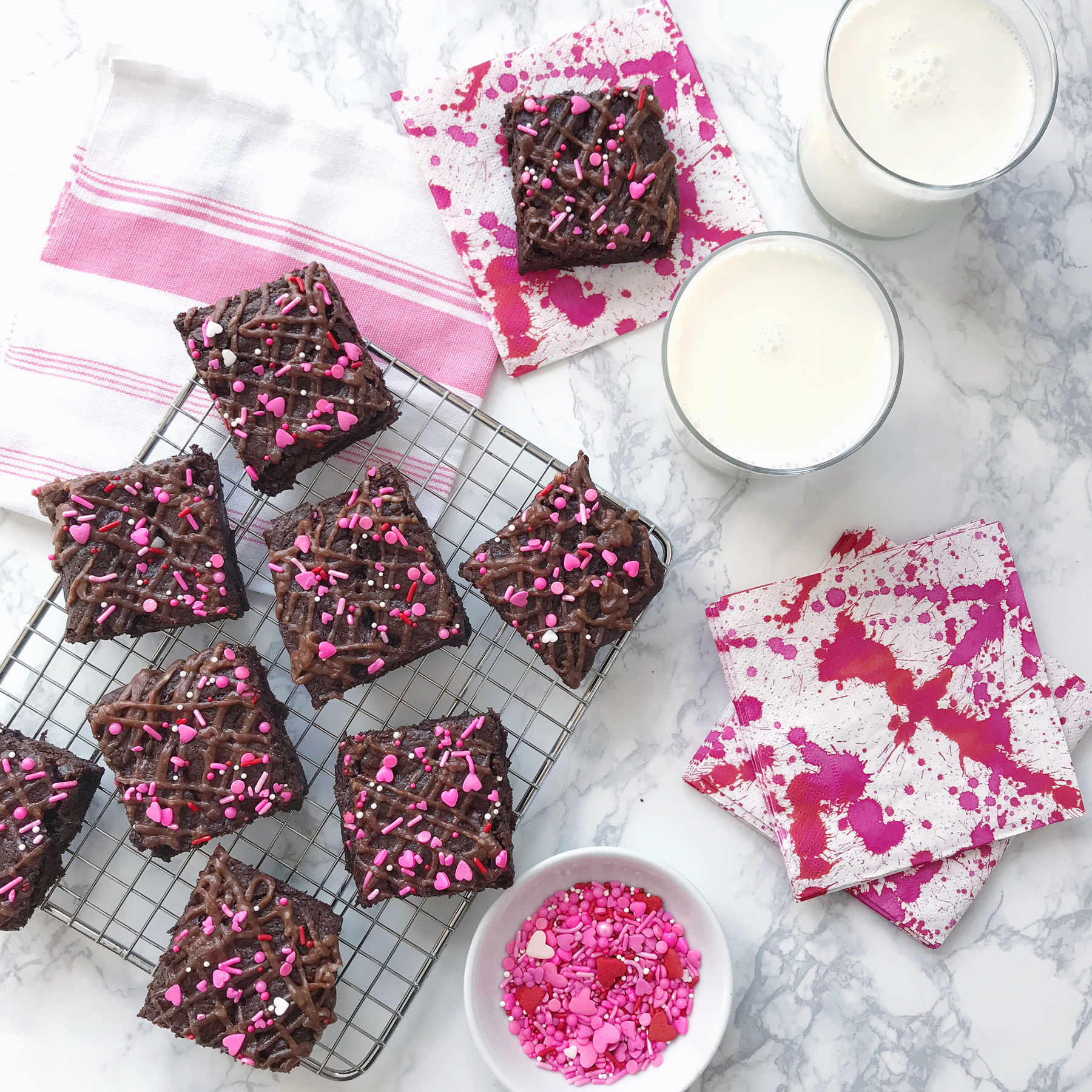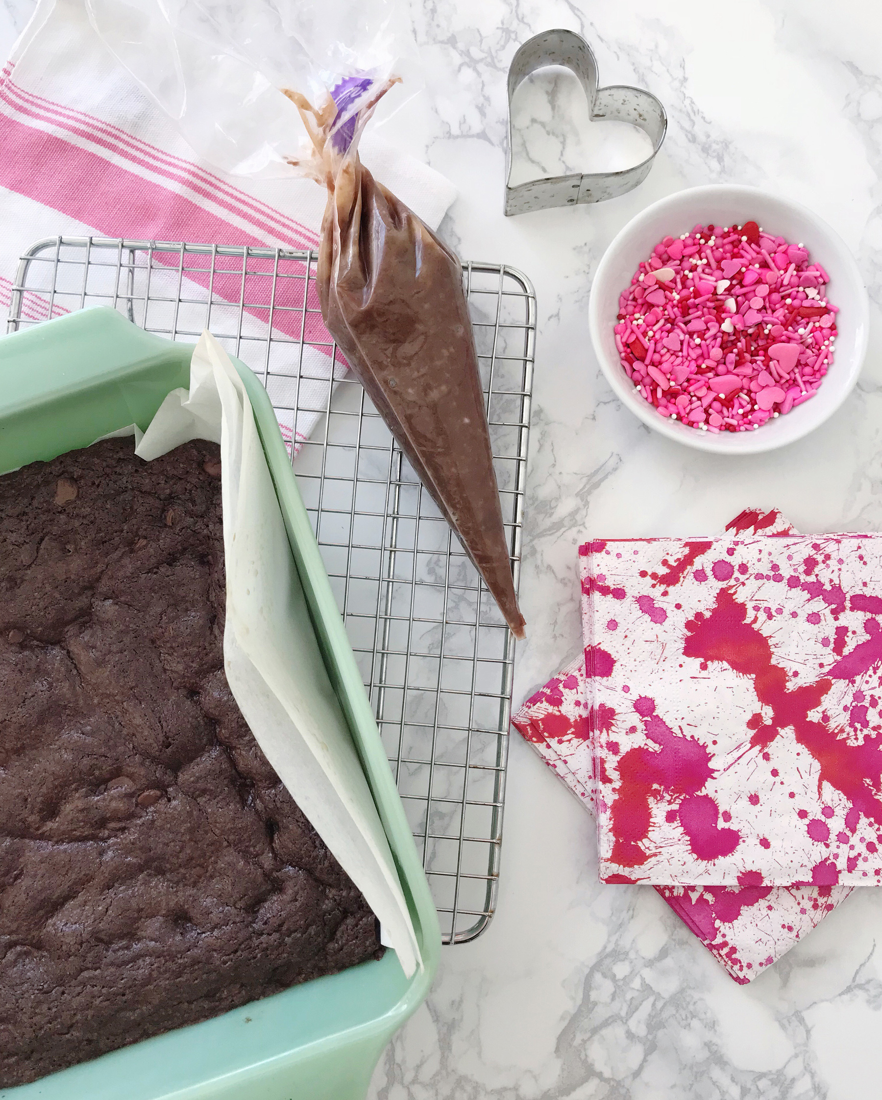 When Valentine’s Day falls mid-week, I tend to be in a bit of a scramble to come up with a special weeknight treat to celebrate the occasion. With just about every special event, my celebration-style always revolves around food. I make special dinner, pick up a favorite beer or wine depending on the menu, and of course we need something sweet to cap off the meal. This year I decided that I would find a way to dress up a boxed brownie mix for a quick-fix dessert that still feels celebration-worthy.