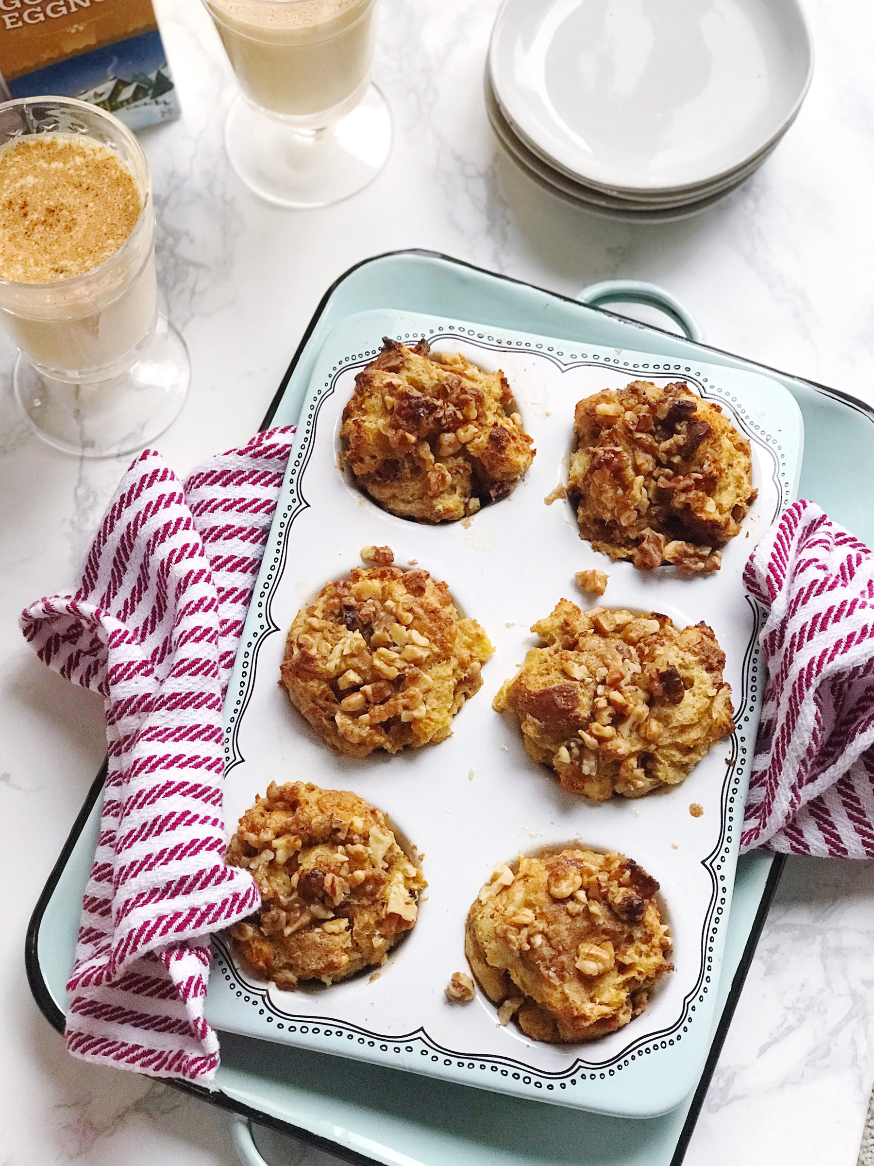 - Serve warm with butter, real maple syrup, or homemade eggnog whipped cream.