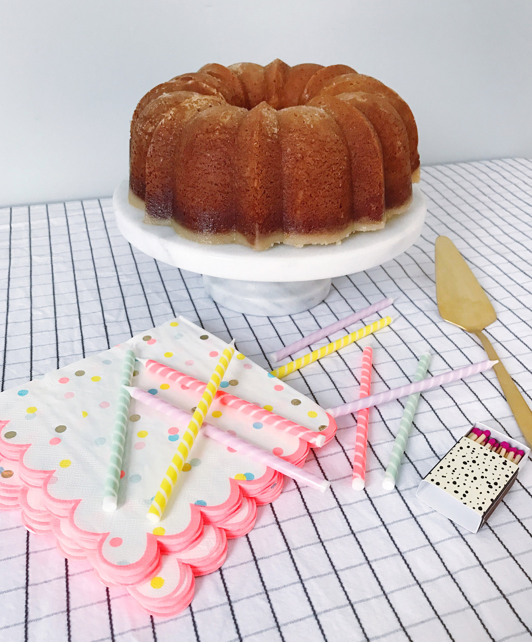 It’s my Mom’s birthday this weekend (don’t worry Mom, I’m not revealing how many candles!) and we took a trip down to visit her in New York so she could get some time with Jane, and celebrate together as a family. I’m usually in charge of cooking when we all gather at their house for the weekend, but with a busy schedule we’re opting for a fancy dinner of take-out from the neighborhood Italian restaurant. I did offer to bring the cake though, and texted her last week to ask what flavor she wanted for her special day. She locked in her cake request: a Kentucky Butter Cake.