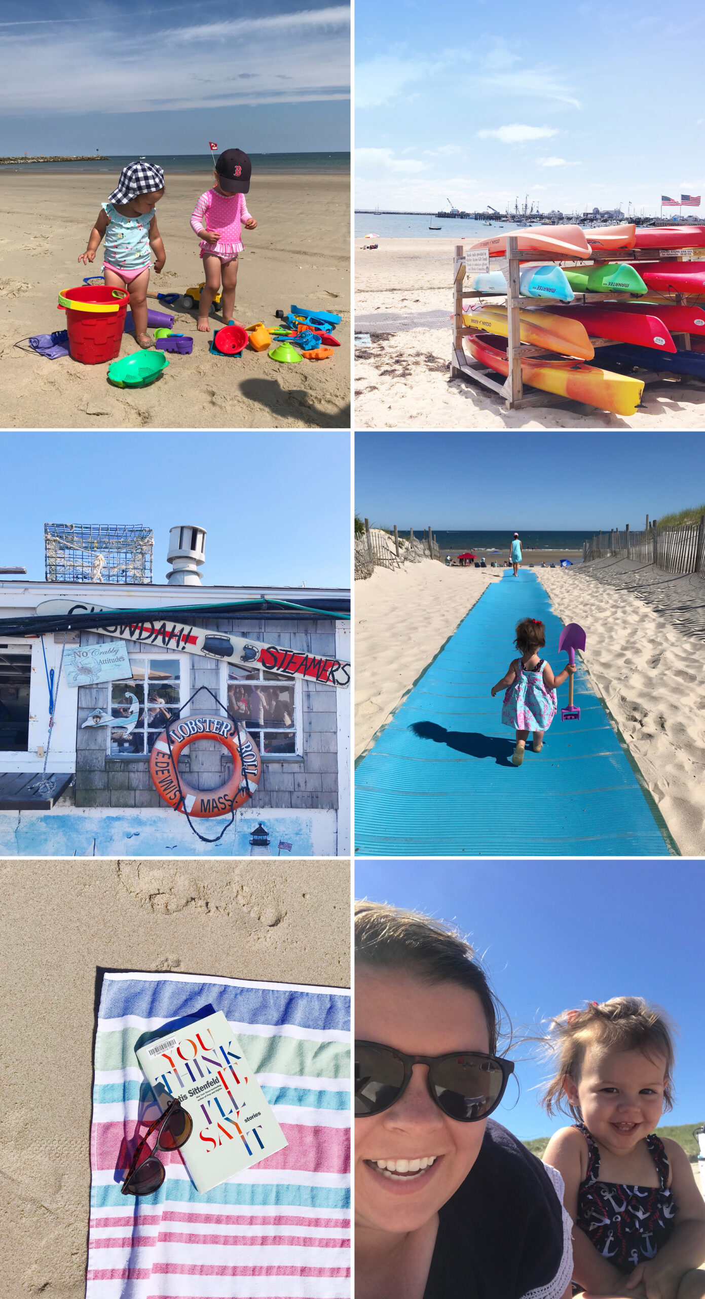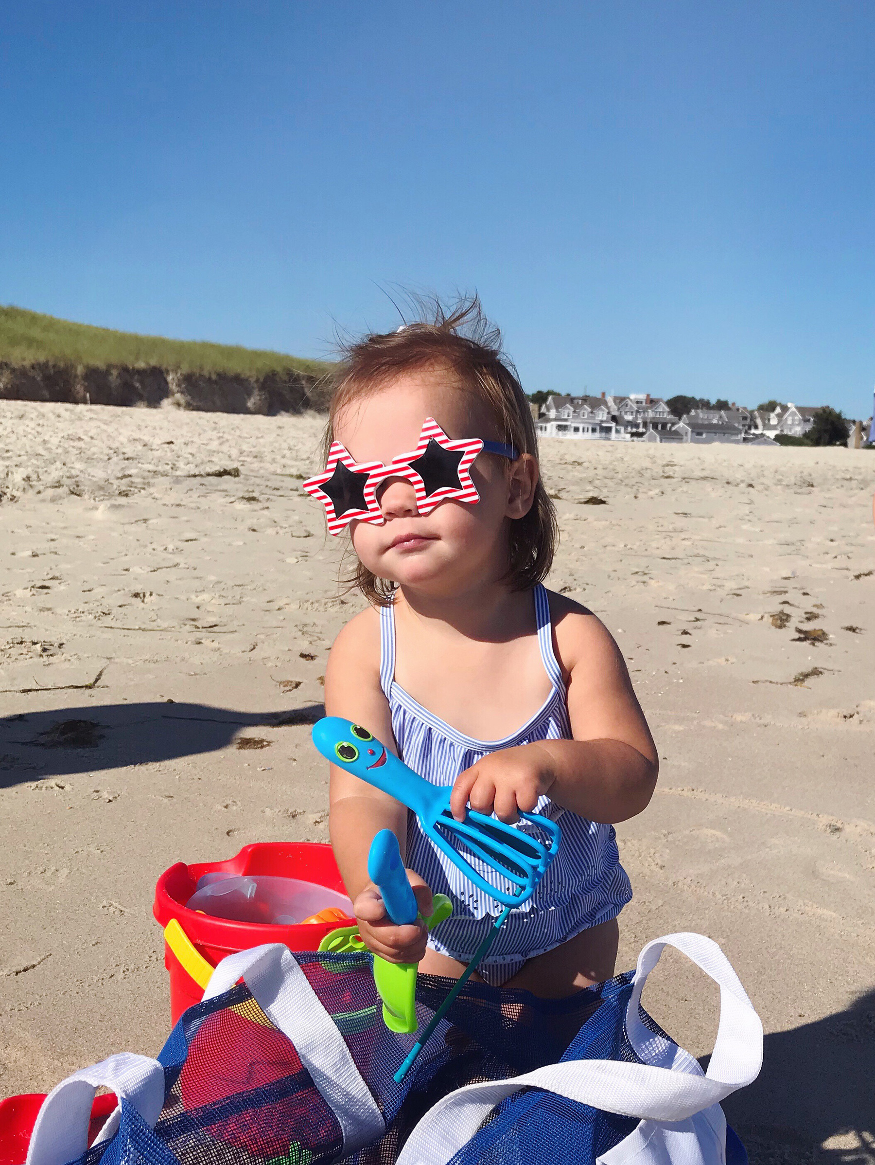 I’m back from a little blog hiatus after the most amazing week at the beach. We stayed with friends at their family beach house on Cape Cod. It was a gorgeous week, we couldn’t have possibly been more lucky with the weather – nearly 6 straight days of sunshine! It was our first real family vacation and Jane took quite a liking to the beach – we collected seashells, dipped our toes in the water, and did lots of digging in the sand. This was our first family vacation at the beach, so I found it to be a bit of a learning experience navigating it with a toddler. The first day we definitely over packed and lugged way too much stuff onto the beach. After that, we got down a much better system with a leaner set of beach gear. We have some great beach chairs that fold up into backpacks (and have really nice insulated pockets and holders for your phone and drinks). We couldn’t travel without beach toys of course and Jane’s favorite were these giant shovels that our friends brought (and the Dads found them pretty useful for digging sand castle holes too).We found that getting there in the early morning was ideal for optimal toddler happiness and packed them snacks and drinks to lure them in for some shade time under an umbrella. Our friends had these awesome water bottles that Jane because obsessed with – I had to order her one for when we got back home! And I got a cute bento-box style container for Jane’s lunch, which helped her keep her sandwich and snacks (somewhat) less sandy.Beach time in the morning resulted in some pretty awesome toddler naps in the afternoon – I actually managed to check a few books off my vacation reading list with at downtime! It felt like a real vacation, success! We also packed a few new toys for Jane and her buddy to keep them occupied and happy in the afternoons. Travel-sized magnadoodle boards were a winner with Jane, and so were the set of sea-animal toys that I brought. Our friends also brought a big book of reusable stickers that they spent time everyday sticking on the glass door to the porch!
