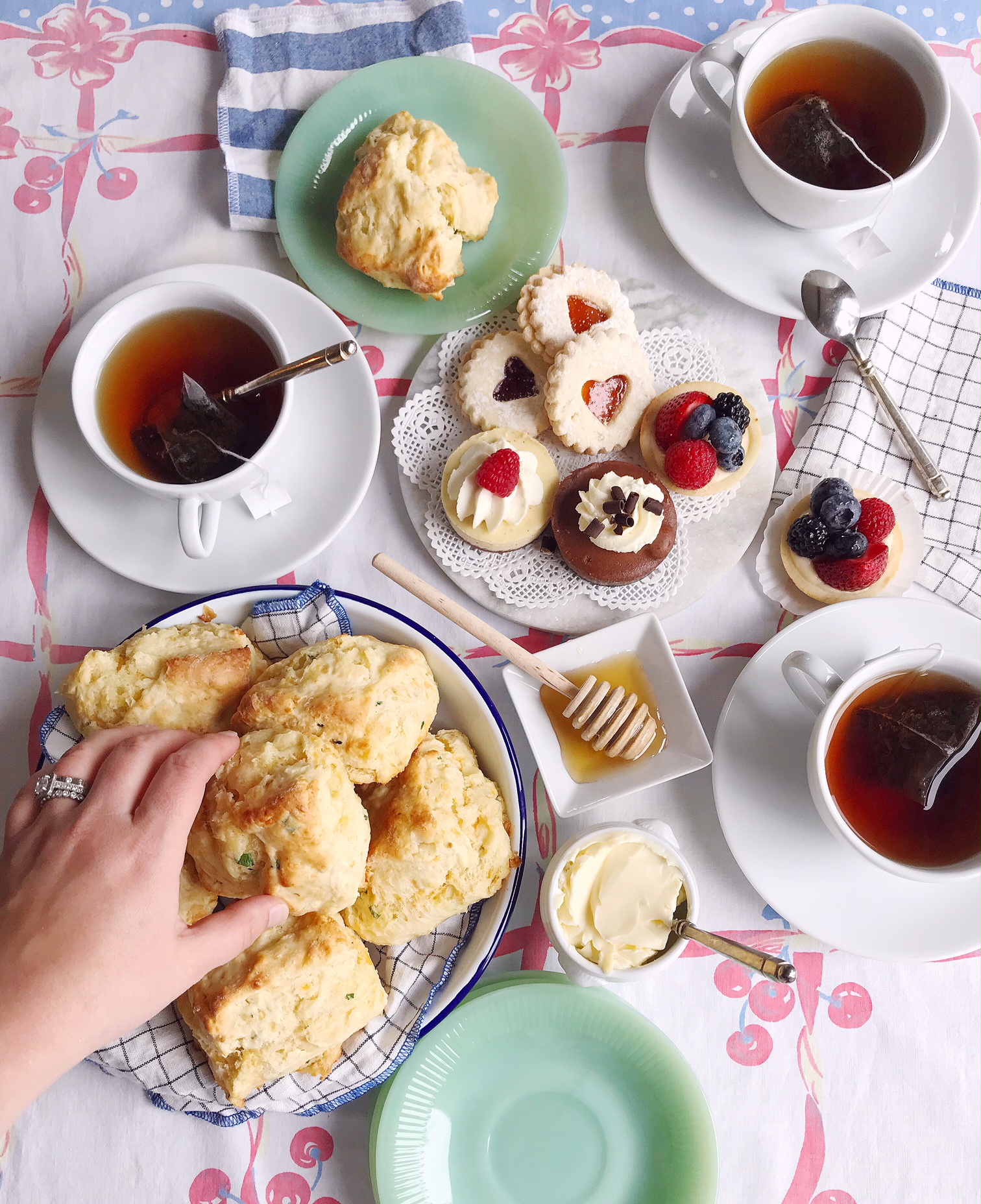 My husband asked if we had any plans this weekend and I answered (maybe too quickly), “The Royal Wedding!” — as if, you know, I’m going to get up at 6am on Saturday morning to attend these festive nuptials. The fervor in my response was met with some teasing, but I am genuinely excited to wake up early this weekend to watch the coverage on TV. It might partly be that we’ve just returned from a trip to London, so I’m still riding a buzz for all things British, including afternoon tea and all of the treats that go along with it. In fact, I decided it was the perfect time to make some baked treats to enjoy during the royal wedding broadcast, inspired by our vacation tea time.