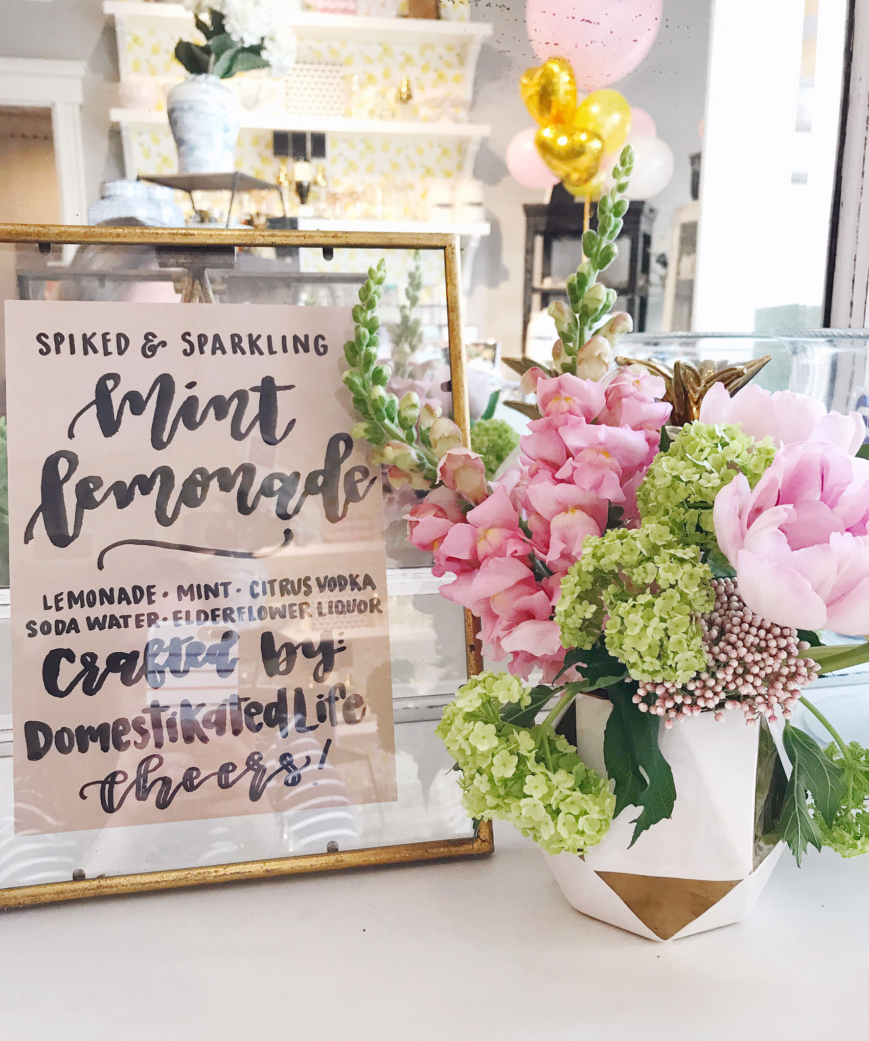 I got to kick the week off at a really fun event with some of my favorite Boston blogger ladies. My friends Julie and Meg run a calligraphy pop-up class called Sip & Script and hosted a session at the most darling home and gift shop in Southie, Neatly Nested. The concept is right up my alley, they get a bunch of friends together, pop some bubbly and pour some cocktails, and teach you the basics of calligraphy. Crafting and cocktails? Yes, please. Speaking of cocktails, they tapped me to craft up a recipe for the signature drink for the night — we enjoyed my spiked and sparkling lemonade and it was a hit. We were refilling glasses and talking about how it’s “sneaky” spiked — you can get the recipe in the images below if you want to mix one up yourself!