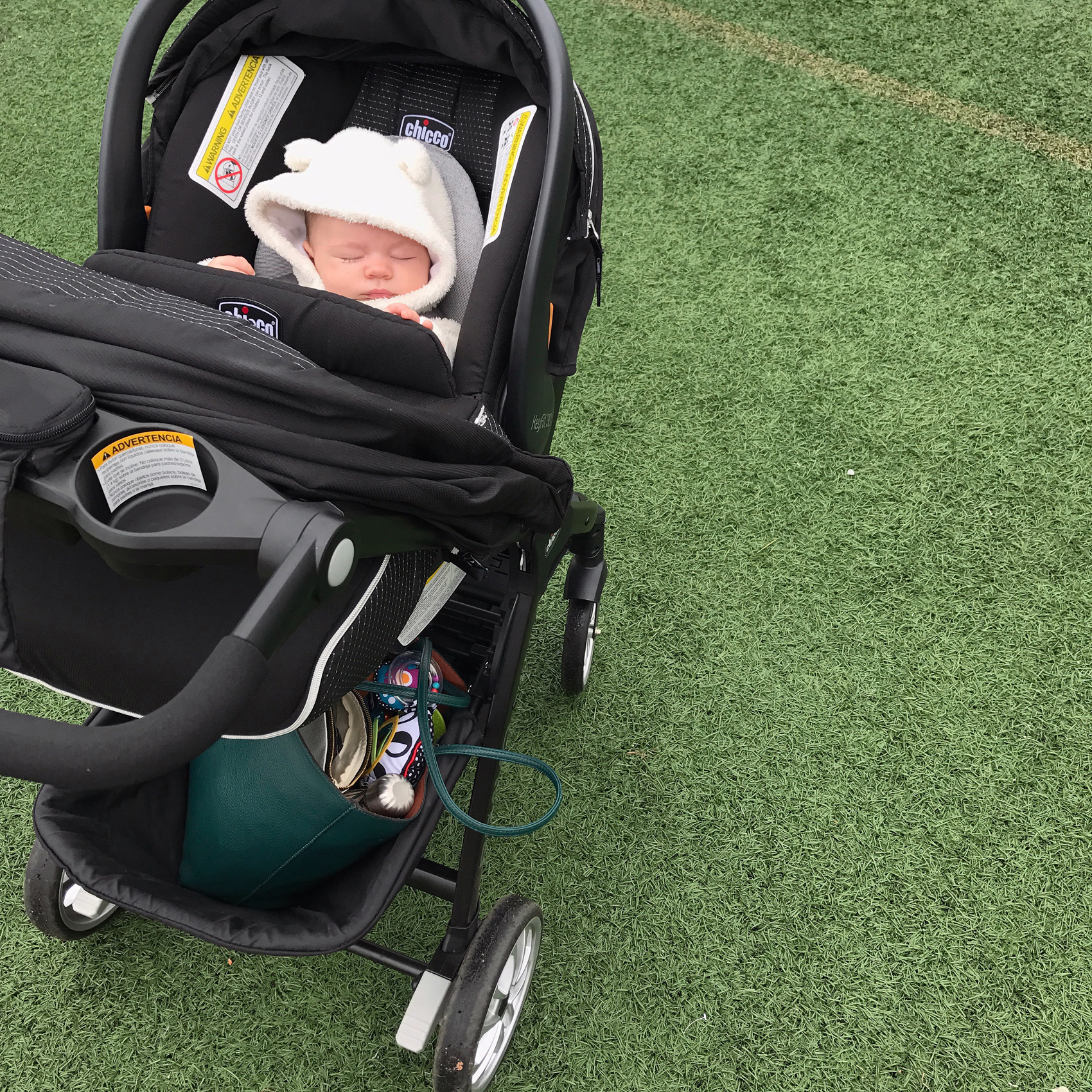 Probably the biggest change in my gear list was the stroller and car seat travel system we decided on. I went in with a clear idea of which stroller I wanted, but when I tested it out in the store I found that it was way too tall for my petite height and incredibly heavy. I chatted with one of the helpful store associates who directed me to another model that had an adjustable handle bar so it would be comfortable for a short gal like me to push, but also adjust up for my taller husband. He also pointed out something I wouldn’t have thought of: the larger stroller I was first considering wouldn’t even have fit in my small car. The model we decided on, Chicco’s Bravo Travel System, was the perfect fit for me, my car, and Jane! The same size issue came up with diaper bags; the model I had selected online looked different in-person and just didn’t fit me right when I tried it on. I ended up picking a shorter, wider shaped diaper bag that was much more comfortable to carry (and looks very cute!).