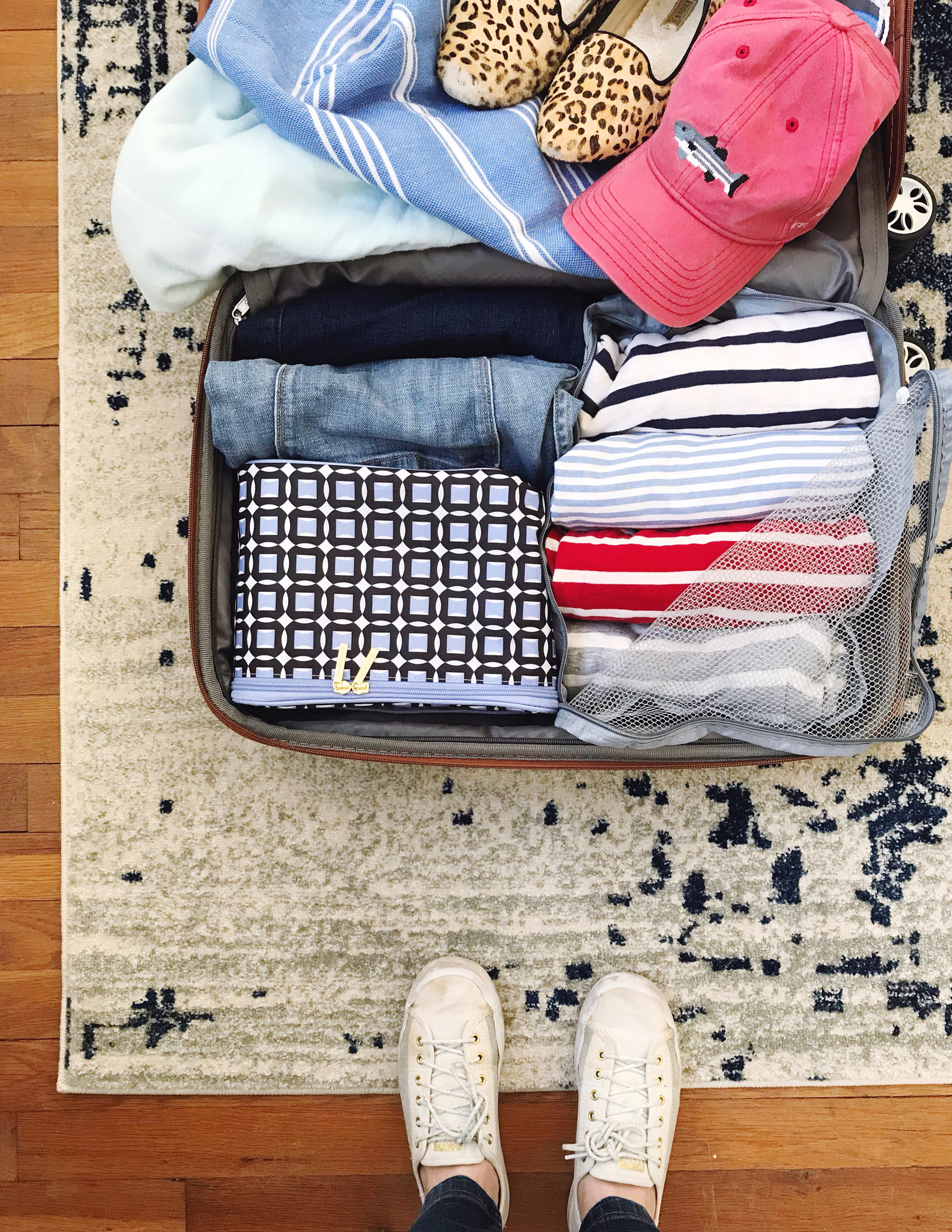 I am currently suffering from a major case of wanderlust, and have been browsing flights, daydreaming of new destinations, and mentally packing my bags for a new adventure. I don’t exactly have the vacation booked yet, but once we decide on where we’re going, I’m going to be ready! When it comes to prepping for a trip – big or small – I have developed my own system for staying organized and making packing a little bit less of a hassle.To start, I always make a massive list for our whole family. I write each day of the week we’re going to be gone for alongside one edge of the page, and then add a space at the bottom for things we’ll use every day (like toiletries, chargers). Then I write each of our names across the top of the paper and start filling in what we need for the trip. It helps me visualize what we’re actually going to use each day, so that I don’t over pack or forget anything.