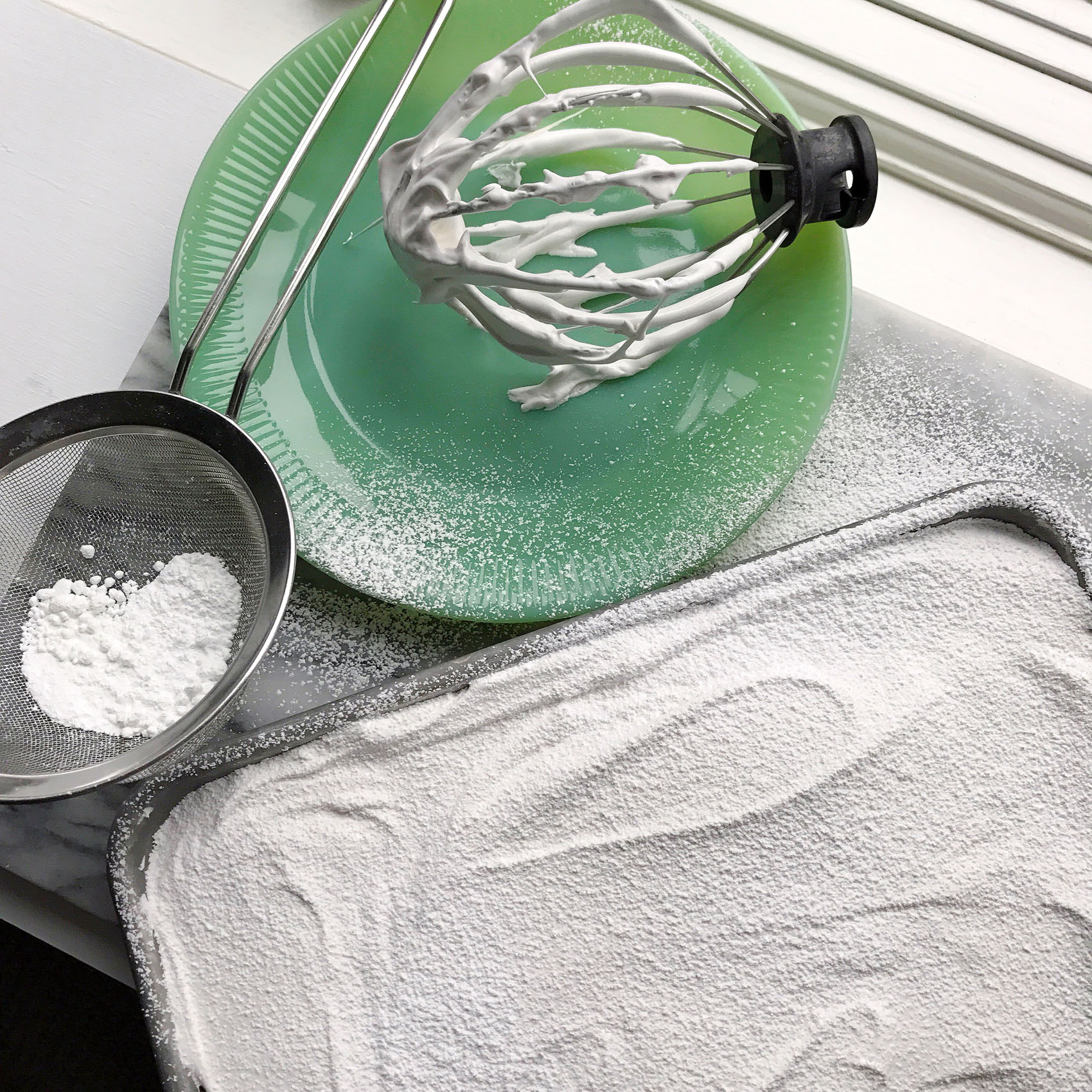 Add more confectioners' sugar over the smoothed out top, and set out to rest uncovered overnight.